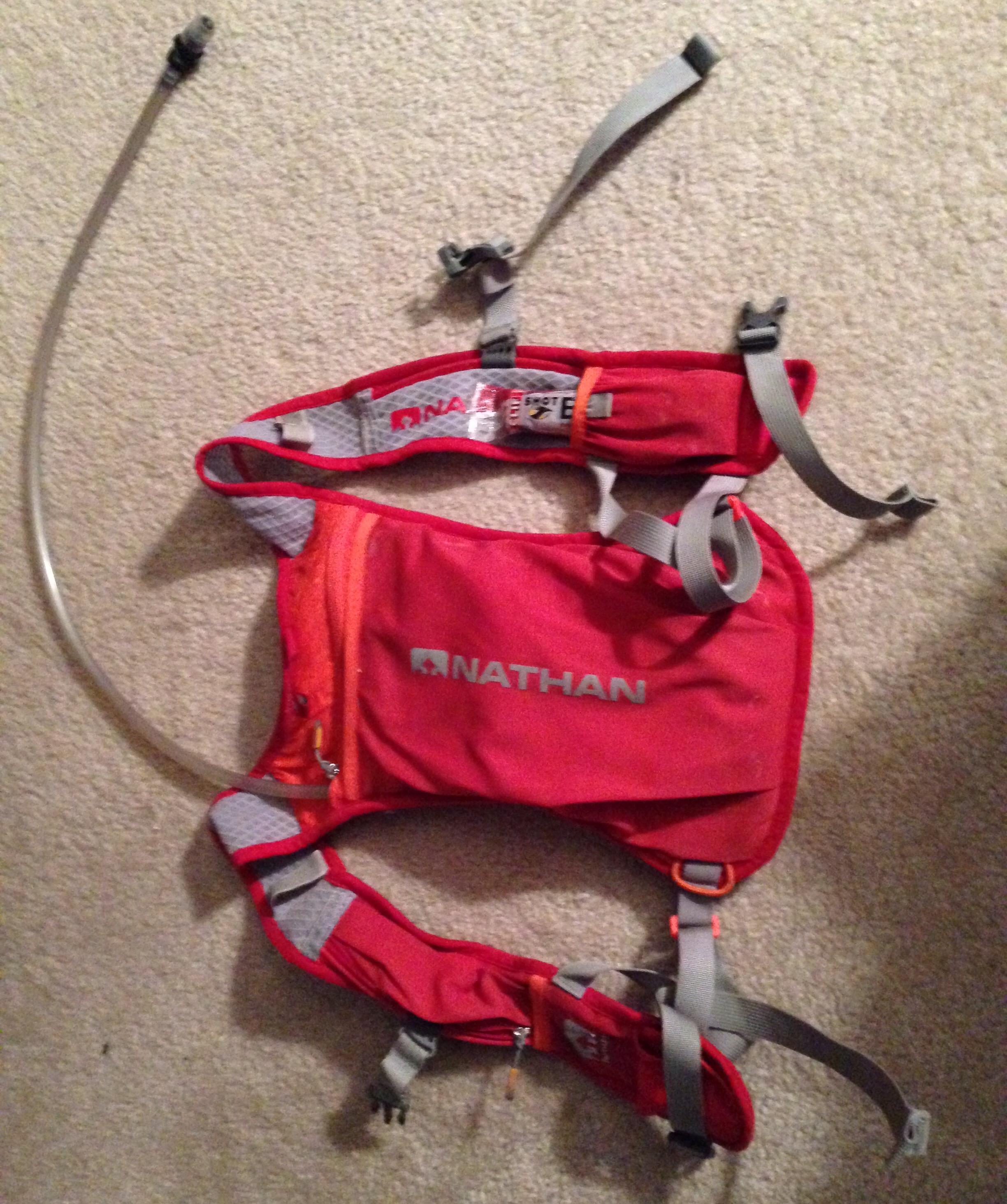 After two ultras and countless training miles over 15 months of service, my Nathan Minimist vest stinks. I mean it, it really reeks. When I strapped it on this morning over clean running clothes, I had to check myself — had I grabbed a jacket out of the hamper? No, that infernal odor is one with the pack, and probably always will be. It’s only distracting during those crucial moments when I’m wearing it indoors as I get ready to leave; the stink is inescapable. Much of the reflective material on the vest is peeling so I’m afraid to wash it and risk losing those nighttime safety features. So, the stink is here to stay. But with a vest this suited to my needs, I’m okay with that.